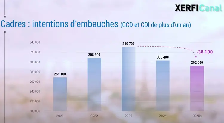 Les intentions d’embauche reculent et redescendent à leur plus bas niveau depuis près de cinq ans La fête est finie, les cadres ne sont plus maîtres du jeu. Côté volumétrie, les intentions d’embauche reculent et redescendent à leur plus bas niveau depuis près de cinq ans. Grandes entreprises, ETI, PME… toutes lèvent le pied, si bien que la réduction du nombre de recrutements de cadres ne fait même plus débat.