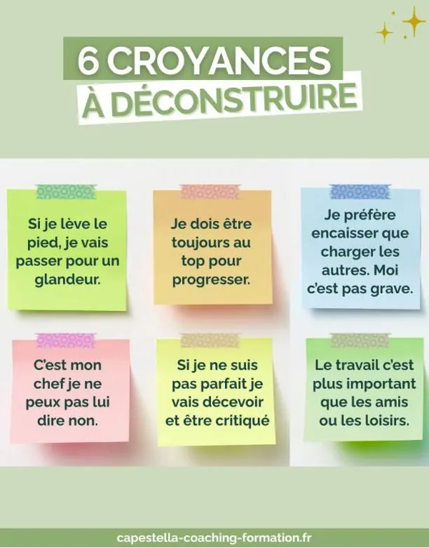 Les 6 croyances tellement répandues qui sont souvent à l’origine du surmenage Extrait du post LinkedIn de Julie Papuga